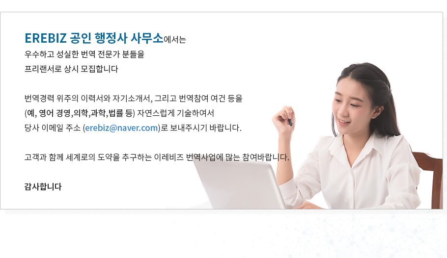 이레공인행정사사무소/ 이레공인번역 | 주소.서울시서초구서초중앙로24길55 서초플라자142 | 대표. 정태완 | Tel.02-595-3457/3458